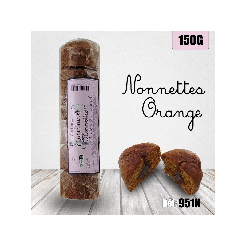 Ingrédients : Farine de blé (France), marmelade d'orange 25 %, sirop de glucose-fructose, purée d'orange 5 %, gélifiant : pectines correcteur d'acidité : acide citrique, huile essentielle d'orange), miel 21 %, sucre, sirop de sucre inverti, jaune d'œuf salé (jaune d'oeuf, sel), poudres à lever (carbonates de sodium, carbonates d'ammonium), arôme.