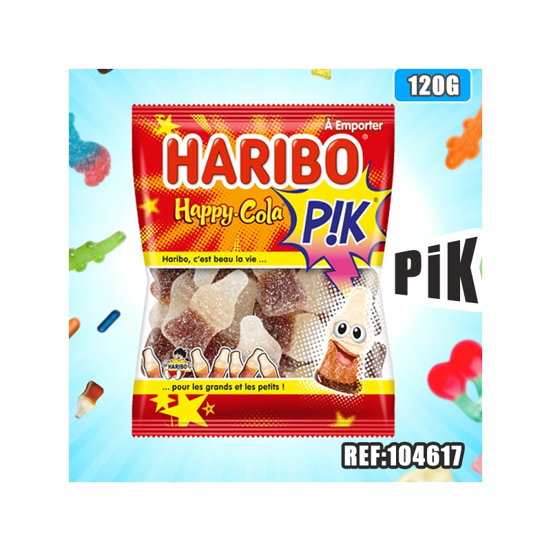 Ingrédients : Sirop de glucose, sucre, gélatine, dextrose, acidifiant : acide citrique, acide malique, correcteur d'acidité : citrate tricalcique, malate acide de sodium, agent d'enrobage : cire de carnauba. sirop de caramel, arôme, Tenir à l'abri de chaleur et de l'humidité. Peut contenir des traces de BLE/LAIT. Valeur nutritionnelle pour 100g : 1425Kj/335Kcal, Matières grasses : 0.5g dont acides gras saturés : 0.1g, Glucides 76g dont sucres : 47g, protéïnes : 5.6g, sel : 0.18g.