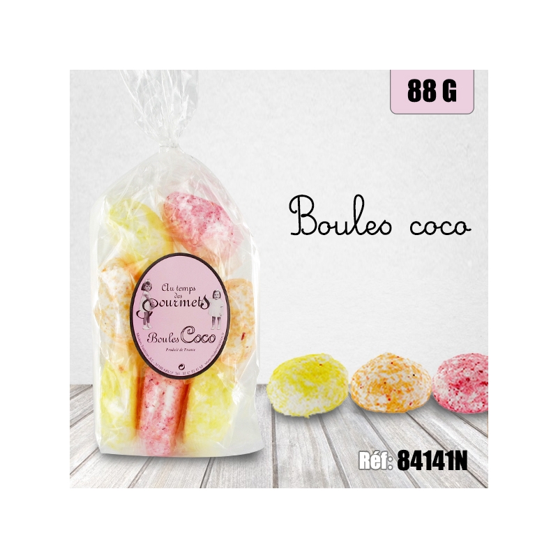 Ingrédients : sucre, noix de coco râpée (10%), sirop de glucose de maïs, gélatine, protéines de lait hydrolysées, arômes, colorants : (extrait de paprika, lutéine), concentrés végétaux (radis, pomme, cassis)