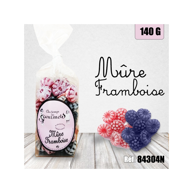 La mûre et la framboise, deux produits ayant des goûts qui se marient très bien, se vendent en sachet de 140g. Ce produit reste un bonbon indémodable.